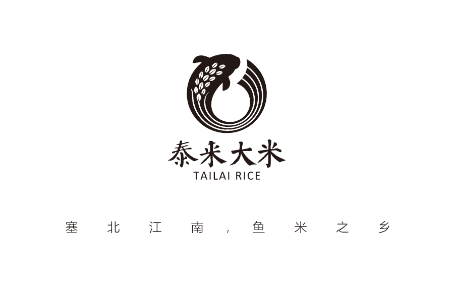 以“泰來大米”四個字為主設(shè)計,加入魚米元素更有記憶點。