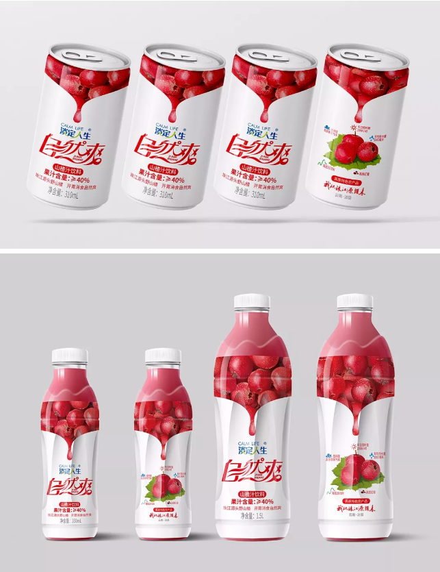 關(guān)于淡定人生·山泉水瓶型設(shè)計源自淡定人生品牌文化,以中國傳統(tǒng)文化中的太極為原型。自然爽果汁系列,含玉米、山楂、獼猴桃、芒果等,其中玉米汁與山楂汁以上市,其外包裝設(shè)計采用果實寫實手法表達(dá),在透露著果肉誘惑之際,傳遞出“七彩云南”之態(tài)。
