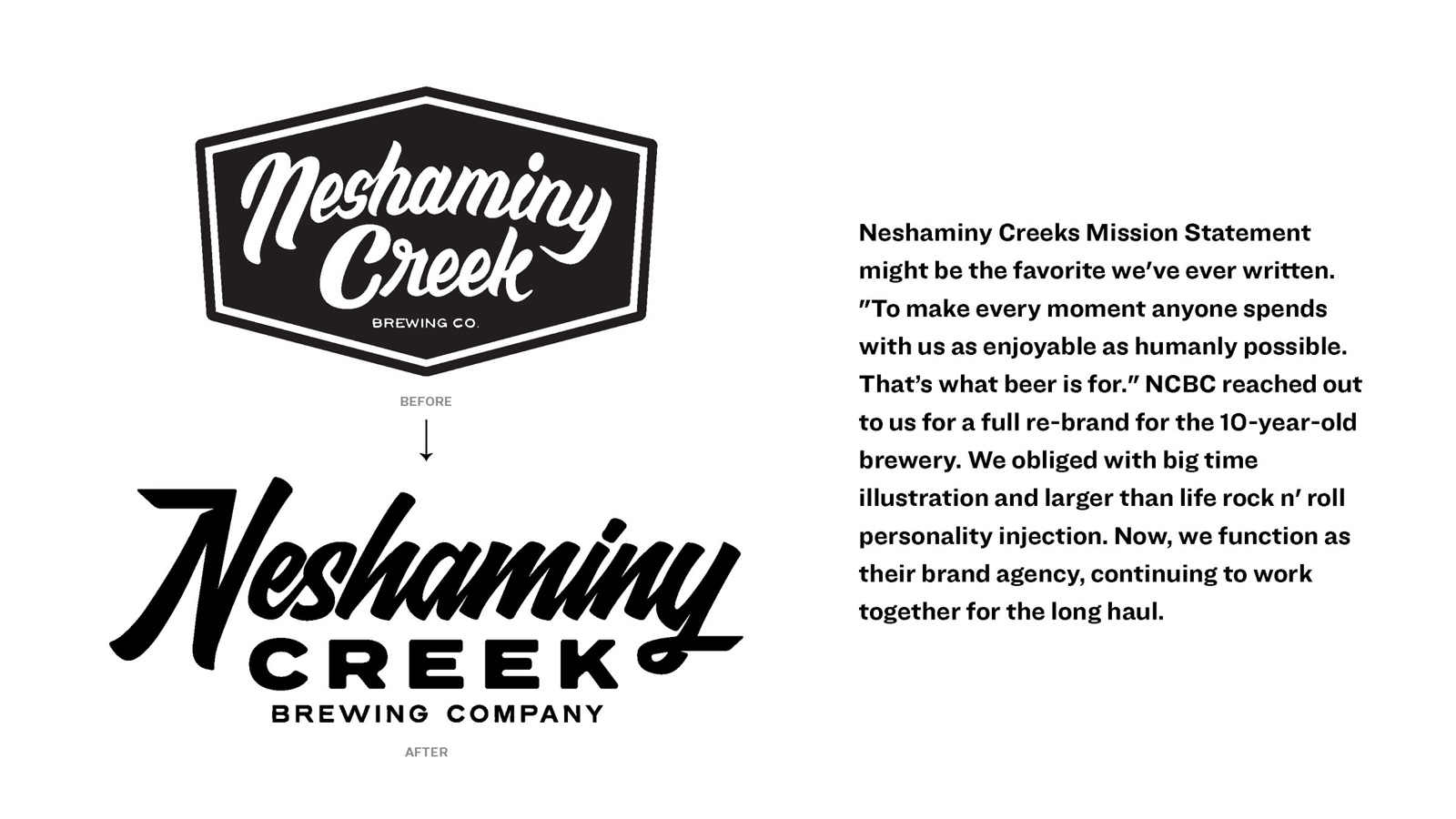 10 years is a long time. The Neshaminy Creek Brewing Company re-brand was going to take a lot of research, insights, strategy and last of all – damn good design and creativity. The previous brand leaned on a mix of Bucks County, Pennsylvania cultural references stacked on top of the ownerships deep roots in the punk rock scenes of the Northeast. When we were tasked with the re-fresh, we knew we had to pay homage to where they had been but bring them into the future at the same time. Make it a little more polished, a little more mature – but don’t let em’ forget where you come from. We developed a vastly responsive brand package and graphics kit with an updated main script word mark and a plethora of badges, pieces and parts to keep the core brand main stage.
