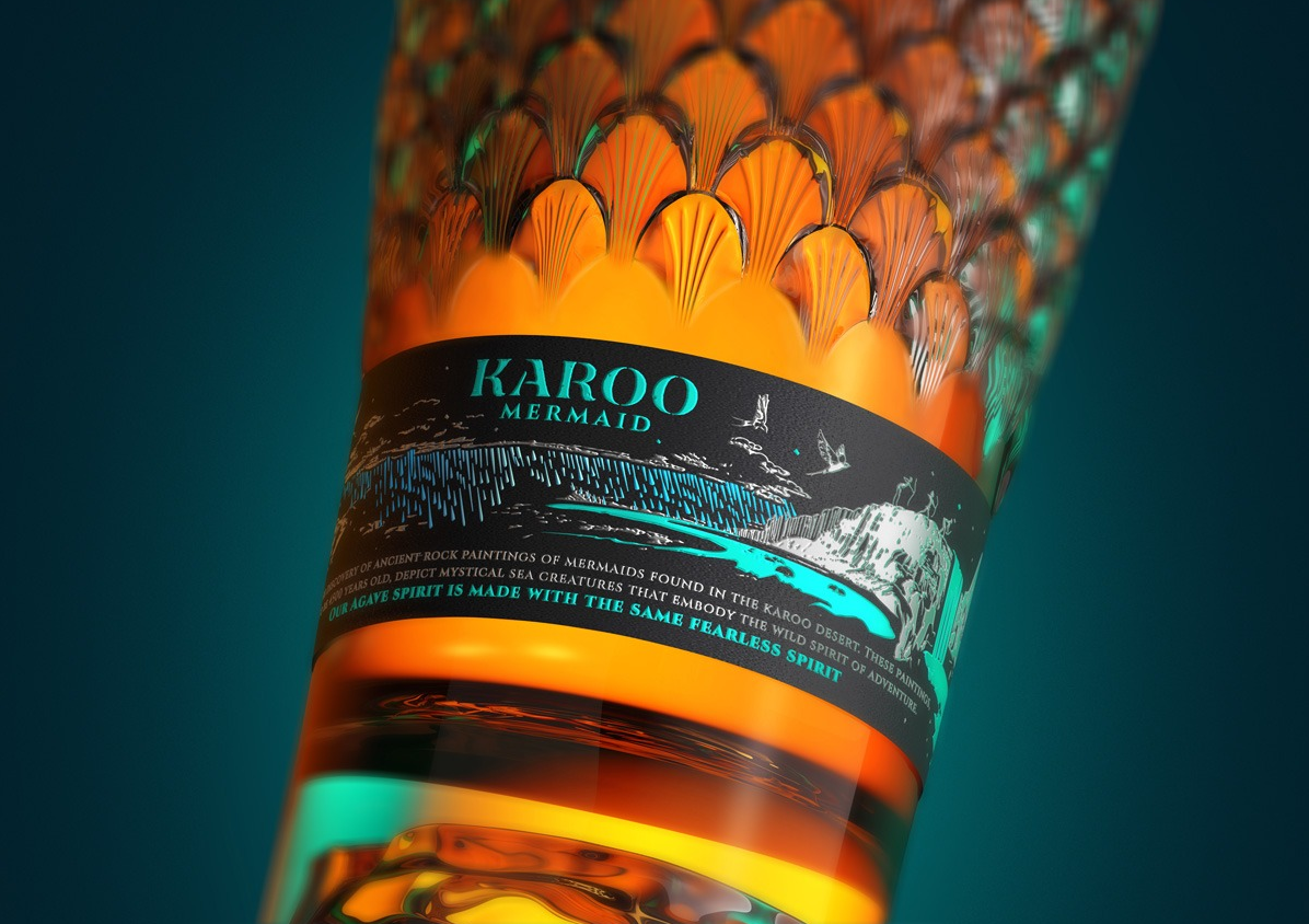 為了創(chuàng)造一種真正植根于南非文化的產(chǎn)品,該設(shè)計團隊從“卡魯美人魚”的民間傳說中汲取靈感,揭開了手工龍舌蘭酒的包裝原型,這種酒由生長在半干旱卡魯景觀中的本土植物制成。