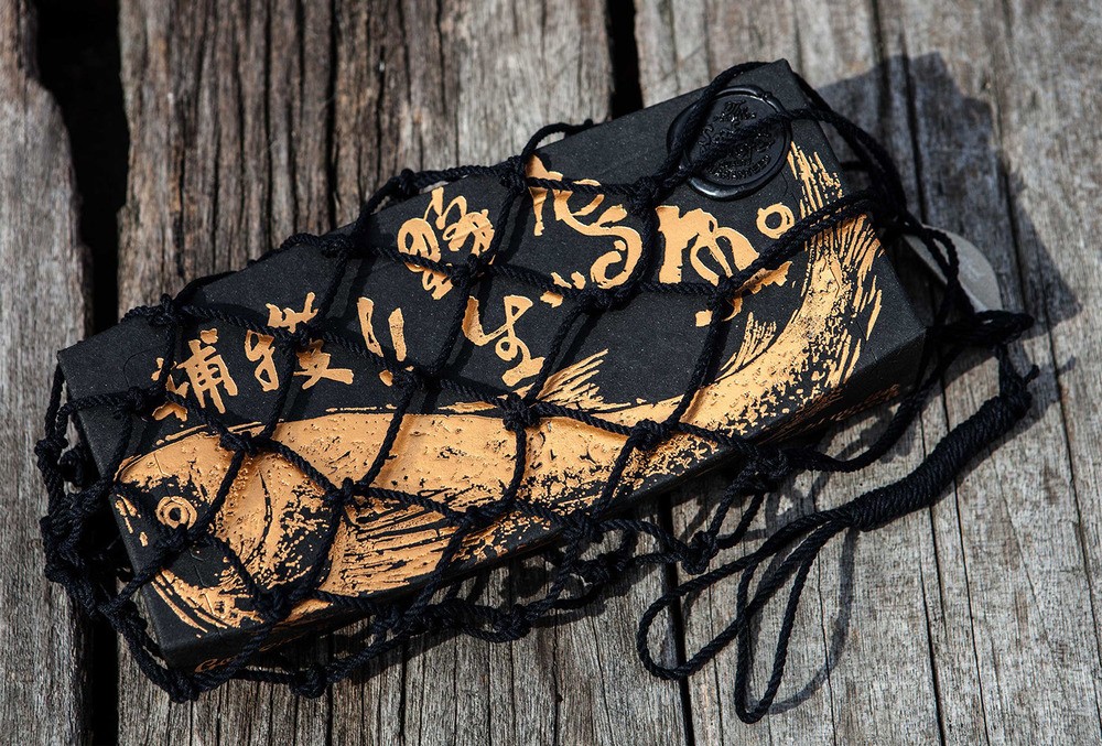 整個包裝北京設(shè)計小編認為絕對顛覆了對腥味濃重的烏魚包裝的刻板印象,黑色與金色的搭配,火漆印章和漁網(wǎng),讓你分分鐘感受傳統(tǒng)與高端。在色彩上,黑盒做出來的也是再生紙,盒體視覺效果都很有手工打造的感覺,當(dāng)消者使用該產(chǎn)品,并從漁網(wǎng)形狀的盒子中,打開取出產(chǎn)品時,他有一類似于親自體驗捕魚的喜悅,此包裝盒的底部設(shè)計用測量線,以方便烏魚子的切片燒制時,廚師可以自由切割各種尺寸的魚片。野生烏魚,從自然界中獲取,同生互存的概念,循環(huán)及環(huán)保的包裝理念。佳節(jié)伴手禮的好選擇。