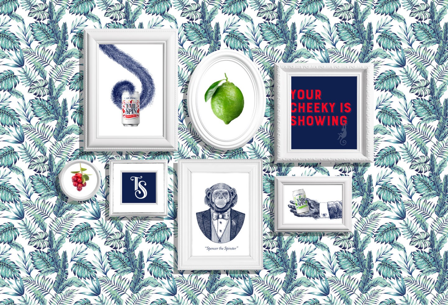 Tail-Spin采用了許多緊張的白酒品牌的標(biāo)志性形式和工藝,并將其轉(zhuǎn)變?yōu)橐粋€(gè)瘋狂的杜松子酒聯(lián)合。手繪商標(biāo)周圍是多汁的花絲和飛濺的香味,表達(dá)清新的味道爆發(fā)。我們厚顏無(wú)恥的猴子的尾巴完成了橫桿的“A”,而他的朋友繼續(xù)通過框架風(fēng)味橫幅黨。這是一個(gè)荒謬的令人耳目一新的轉(zhuǎn)變,打破了今天陳腐的貨架現(xiàn)成的飲料供應(yīng)。